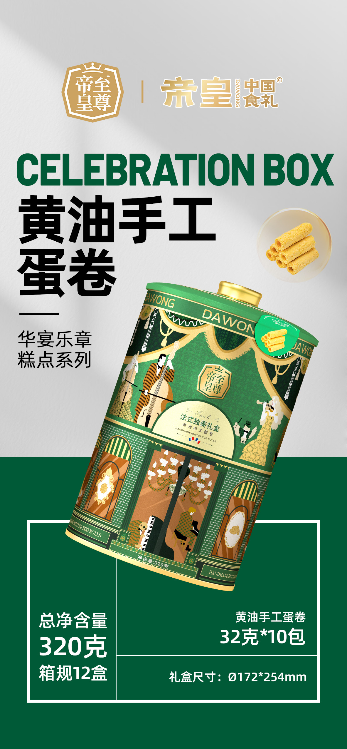 至尊帝皇华宴乐章糕点系列·黄油手工蛋卷法式独奏礼盒320g